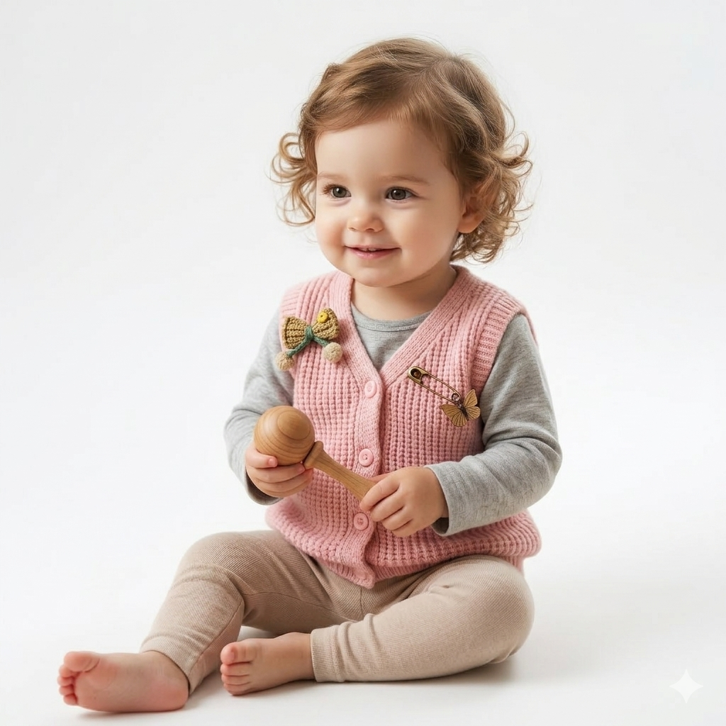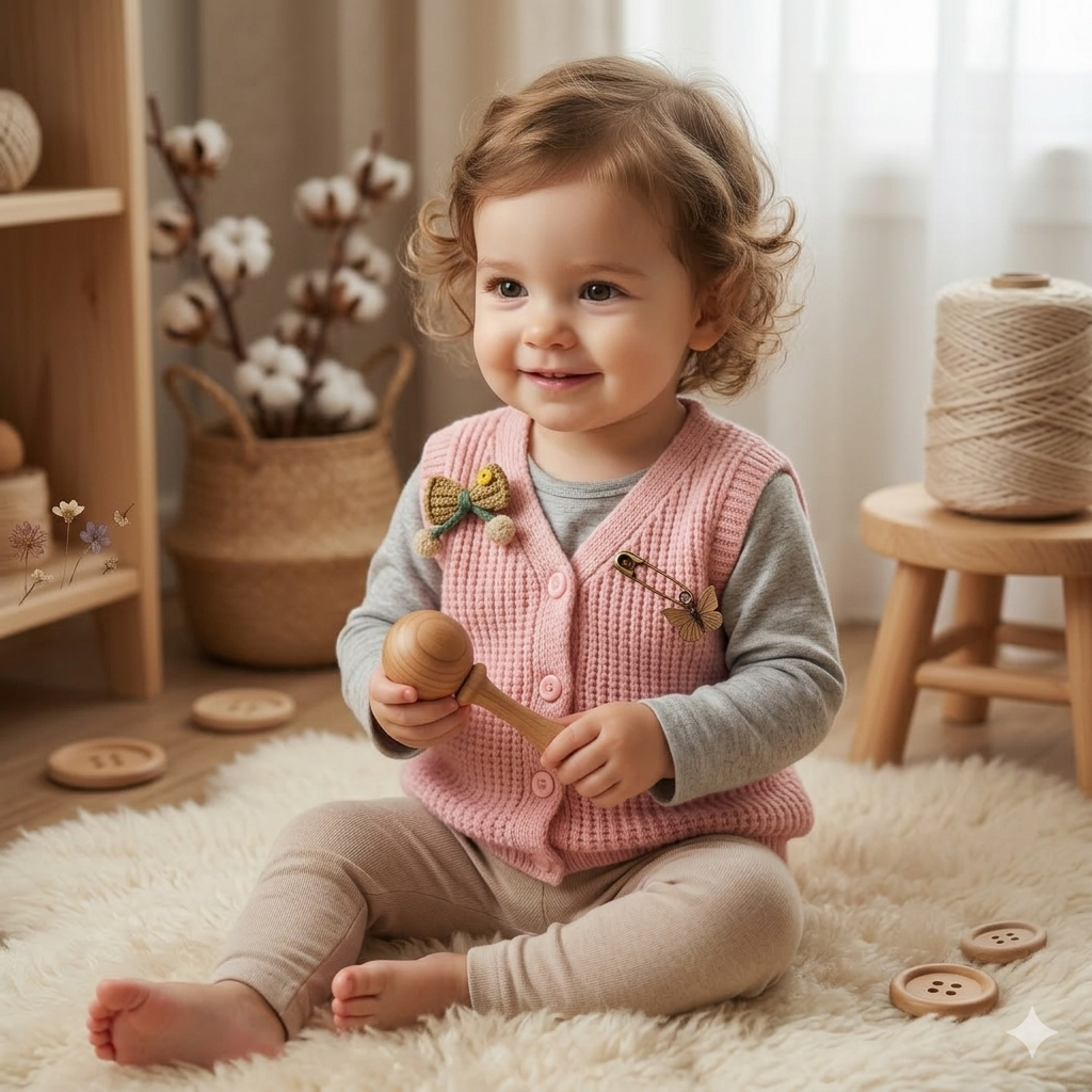 Elevate your little one’s wardrobe with the ultimate blend of comfort and artisanal charm. This Blush Blossom Knitted Vest is meticulously crafted using a premium, soft-touch waffle knit pattern, providing a gentle texture that is kind to delicate skin while offering breathable warmth for year-round layering.