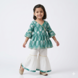 Elevate your little one’s ethnic wardrobe with the Emerald Blossom Set, a stunning two-piece ensemble that radiates grace and playful charm. Meticulously designed for festive celebrations, weddings, or cultural events, this outfit combines traditional silhouettes with high-quality fabrics to ensure your child feels as good as they look.