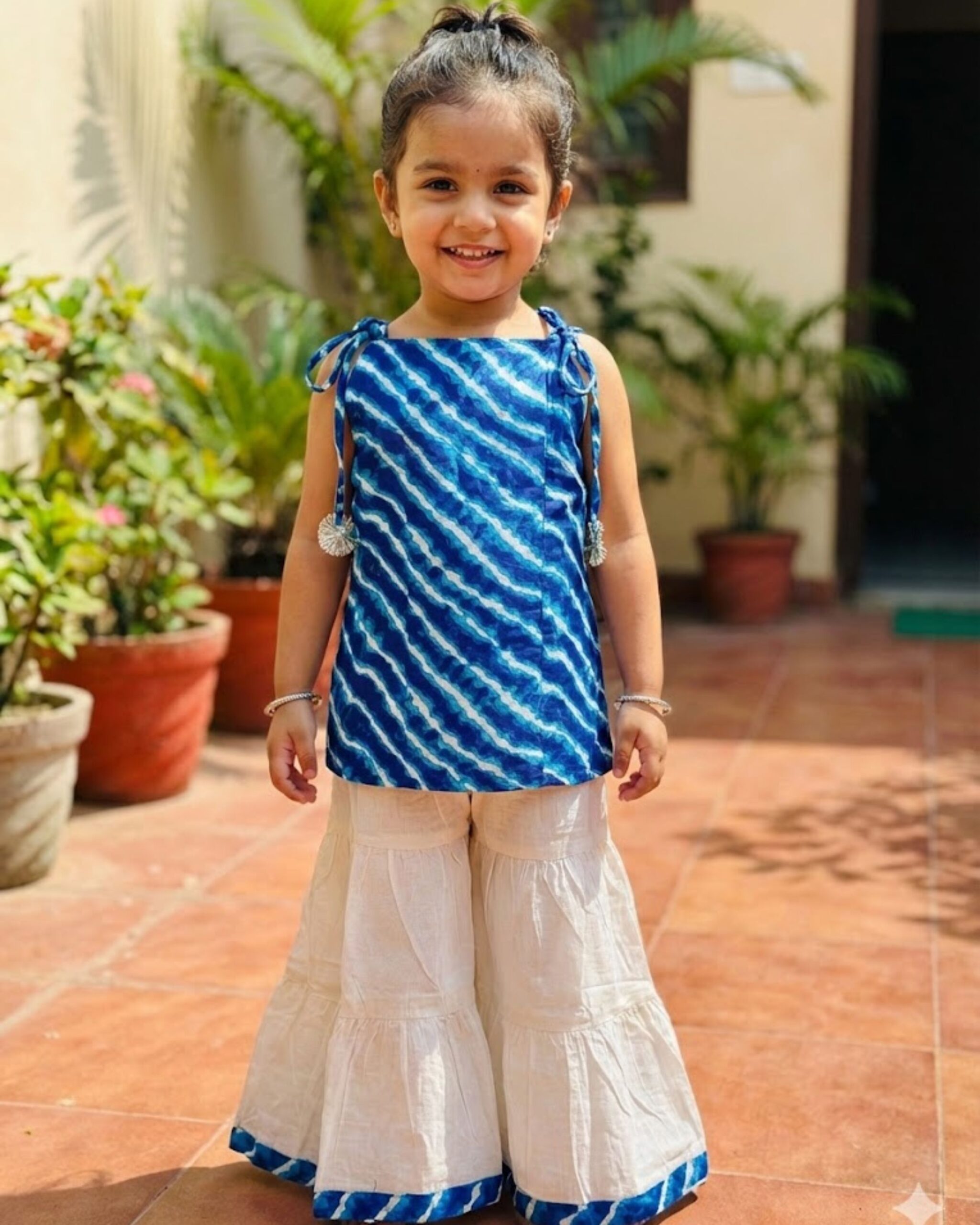 This Girls Ethnic Sharara Set combines modern style with traditional elegance, making it a must-have for festive celebrations and joyful moments 💙✨