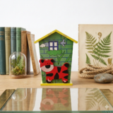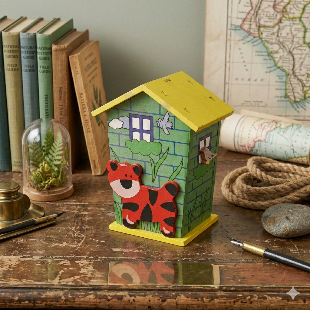 This charming, handcrafted wooden bank is designed to make saving money an adventure for children. Featuring a whimsical “house” silhouette and vibrant, hand-painted details, it serves as both a functional piggy bank and a delightful piece of nursery decor.
