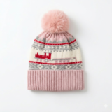 Ribbed Cuff: The beanie features a generous ribbed cuff in a coordinating light pink color. This fold-over brim provides an extra layer of warmth around the ears and forehead and ensures a snug, comfortable fit.