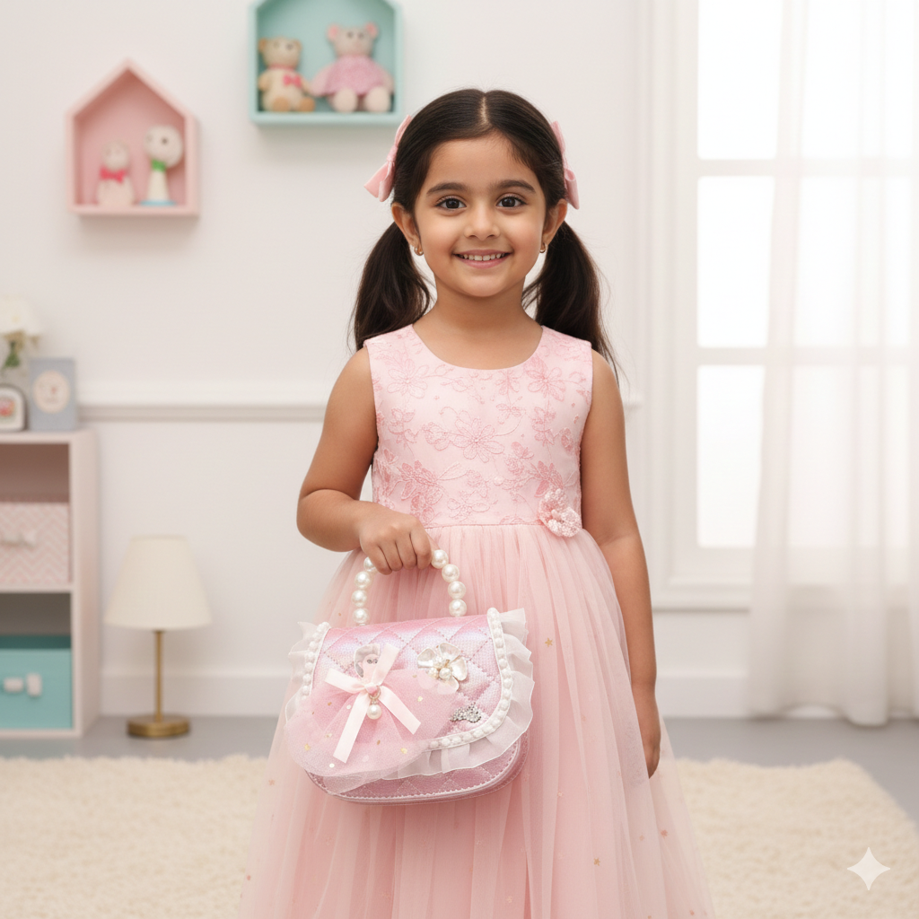 Handle: It includes a sophisticated pearl-bead top handle, making it easy for little hands to carry as a handbag.