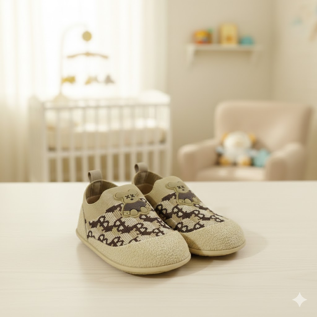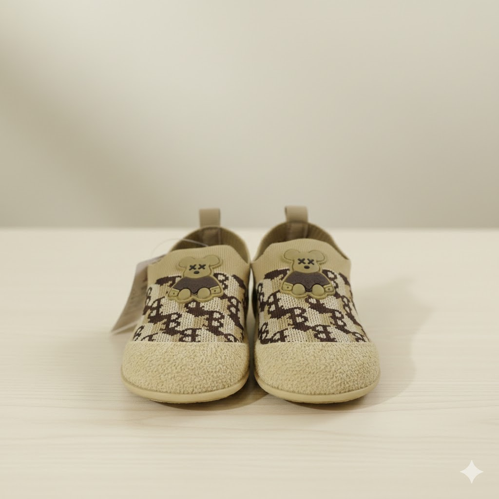 My Recommendation: “Signature Bear Monogram Knit Slip-Ons” — This name hits all the key selling points: the brand-style pattern, the cute character, the material, and the ease of use.